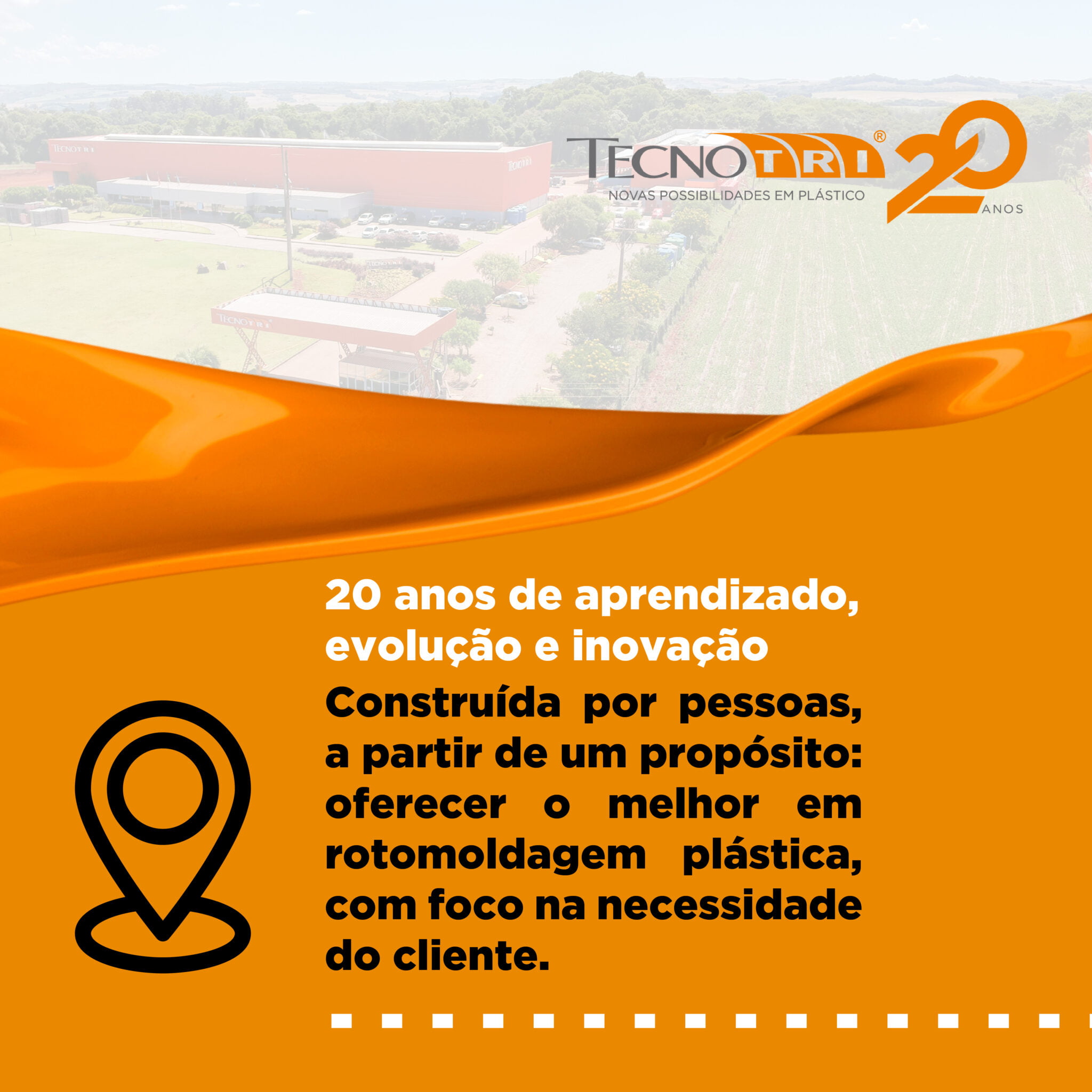 Essa tem sido a incrível trajetória da Tecnotri em 20 anos de atividades. Ficamos muito felizes em compartilhar com você um pouco da nossa dedicação e esforço em apresentar soluções inovadoras e tecnológicas para o mercado de plástico rotomoldado.