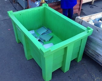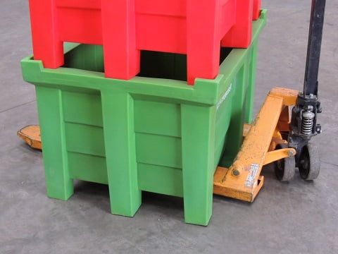 Empilháveis, são produtos extremamente robustos, fáceis de higienizar e livres de manutenção. Não danificam o piso da fabrica. Produzidos em diversas cores e nas versões de 38 a 950 litros, com capacidades de carga que variam de 30 kg até 1000 kg.