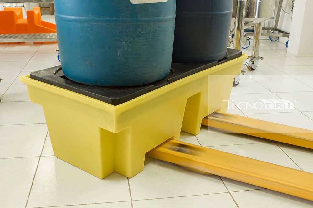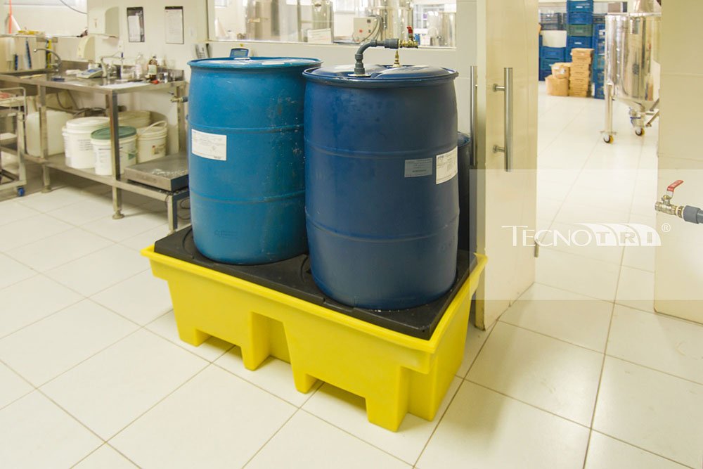 O pallet de contenção, também chamado de dique de contenção e bacia de contenção, possui diferentes formatos e modelos para 1 tambor, 2 tambores e 4 tambores com capacidades variadas de 100L até 1.000L.