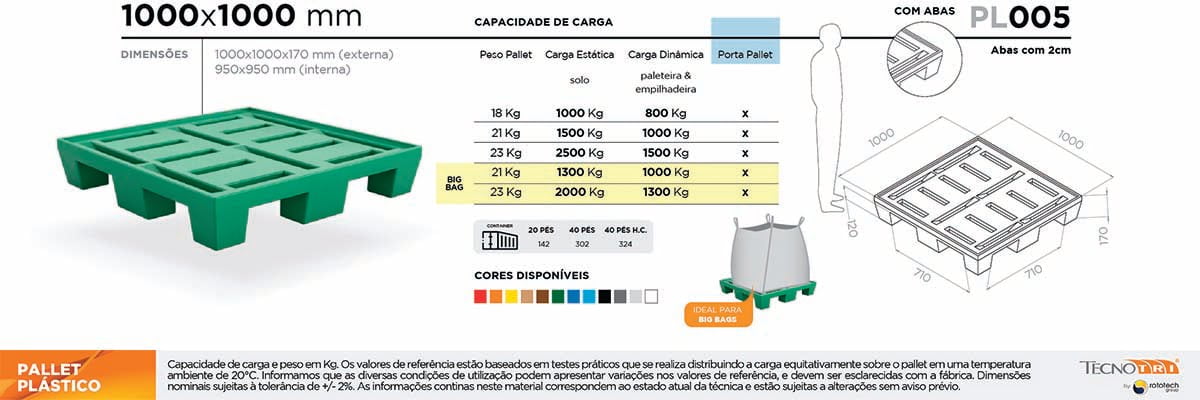 Veja na aba de informações técnicas as capacidades de carga e escolha o pallet PBR ideal para o seu negócio.