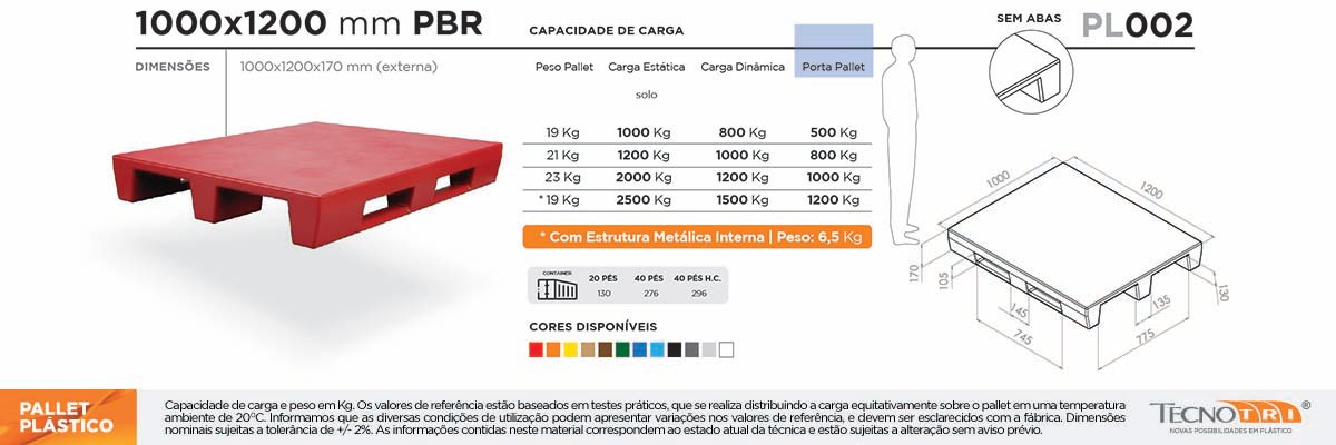 Veja na aba de informações técnicas as capacidades de carga e escolha o pallet PBR ideal para o seu negócio.
