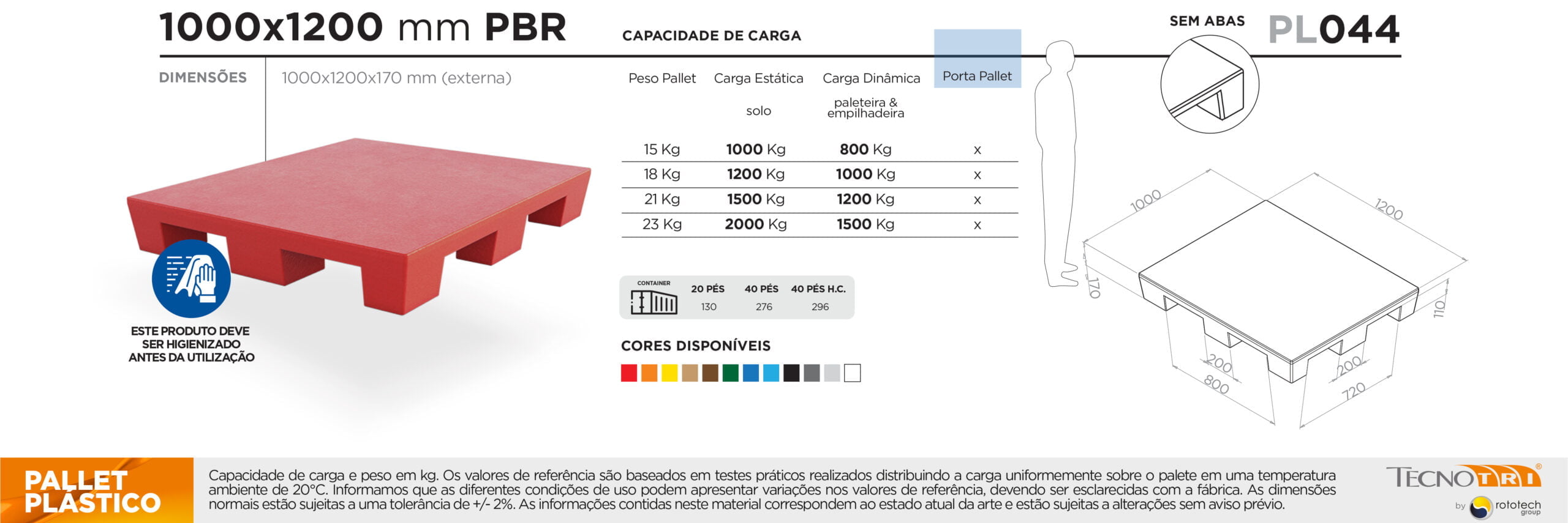 Veja na aba de informações técnicas as capacidades de carga e escolha o pallet PBR ideal para o seu negócio.