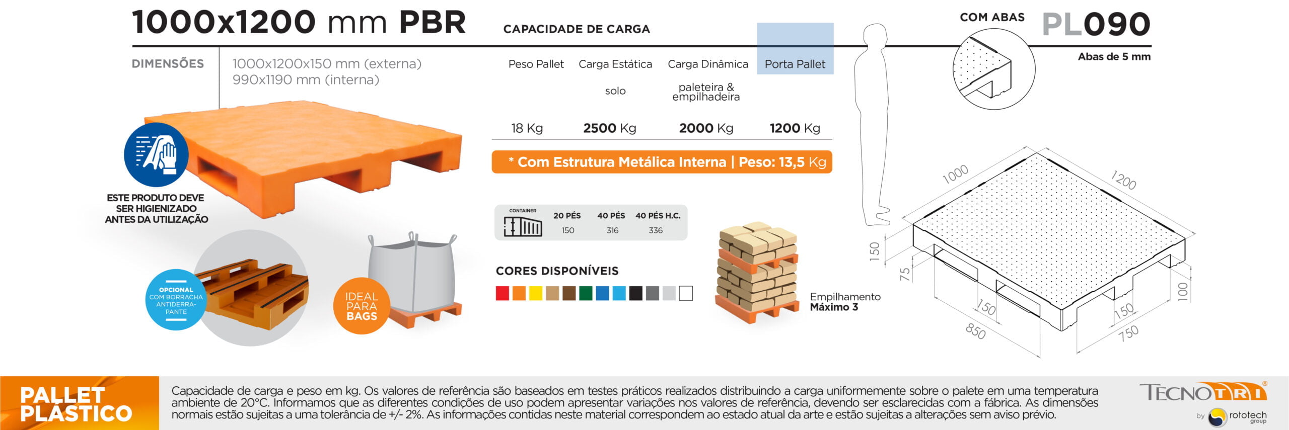 A Tecnotri possui mais de 90 modelos de pallets plásticos, em tamanhos e cores diversas. Porém, se você preferir, podemos desenvolver o pallet perfeito para se enquadrar na sua empresa. Temos uma equipe de engenheiros 100% preparados para desenvolver projetos especiais e personalizados para nossos clientes. Você entra em contato com a nossa equipe e explica o tipo de pallet que a sua empresa precisa para melhorar sua produção.