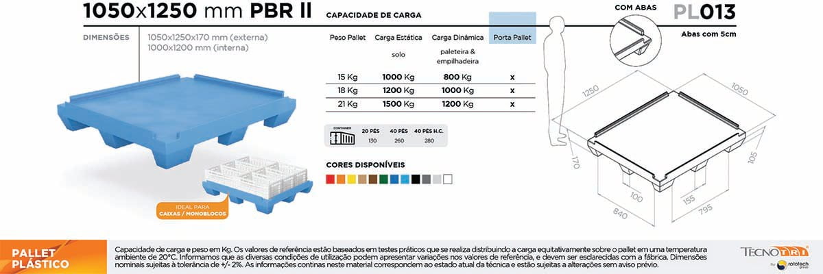 Veja na aba de informações técnicas as capacidades de carga e escolha o pallet PBR ideal para o seu negócio.