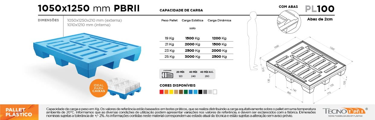 A Tecnotri possui mais de 90 modelos de pallets plásticos, em tamanhos e cores diversas. Porém, se você preferir, podemos desenvolver o pallet perfeito para se enquadrar na sua empresa. Temos uma equipe de engenheiros 100% preparados para desenvolver projetos especiais e personalizados para nossos clientes. Você entra em contato com a nossa equipe e explica o tipo de pallet que a sua empresa precisa para melhorar sua produção.