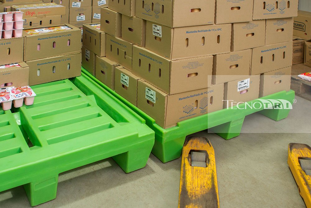 Até 70% mais leve e resistente que o pallet de madeira, o pallet plástico é imune a agentes externos, suportando variações de temperatura de -35°C a +60°C sem sofrer variação de peso e cor. Por isso, é muito utilizado em Laticínios, Frigoríficos e Indústrias de Alimentos em geral.