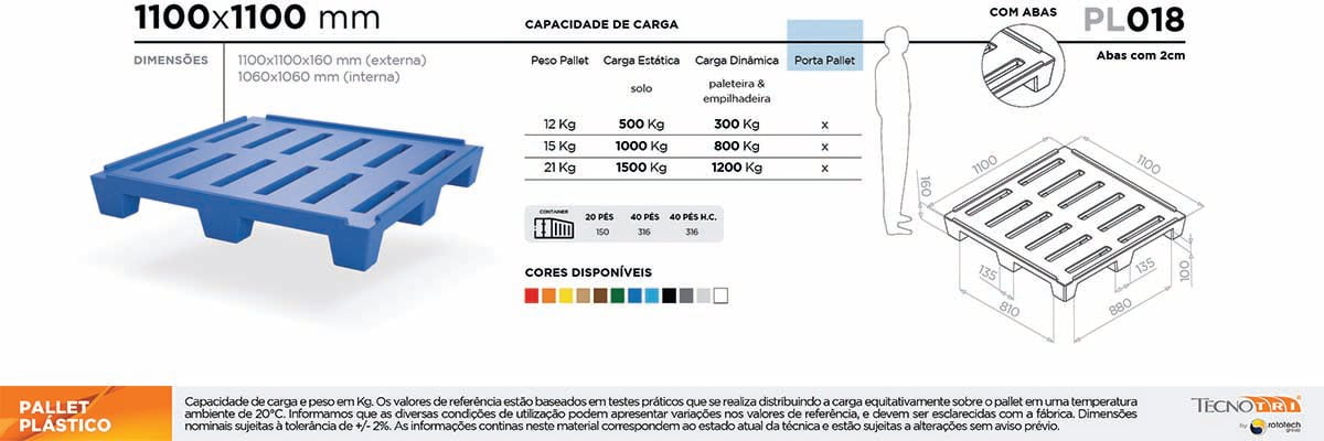 Veja na aba de informações técnicas as capacidades de carga e escolha o pallet PBR ideal para o seu negócio.
