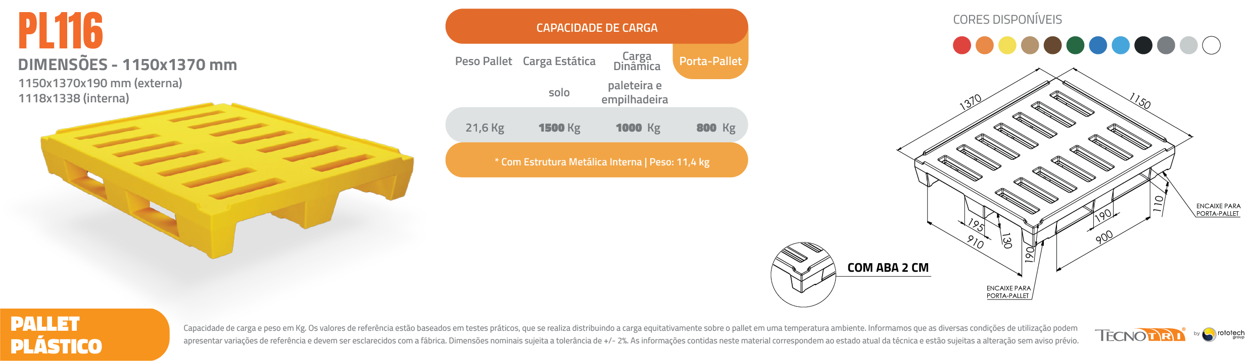 A Tecnotri possui mais de 90 modelos de pallets plásticos, em tamanhos e cores diversas. Porém, se você preferir, podemos desenvolver o pallet perfeito para se enquadrar na sua empresa. Temos uma equipe de engenheiros 100% preparados para desenvolver projetos especiais e personalizados para nossos clientes. Você entra em contato com a nossa equipe e explica o tipo de pallet que a sua empresa precisa para melhorar sua produção.