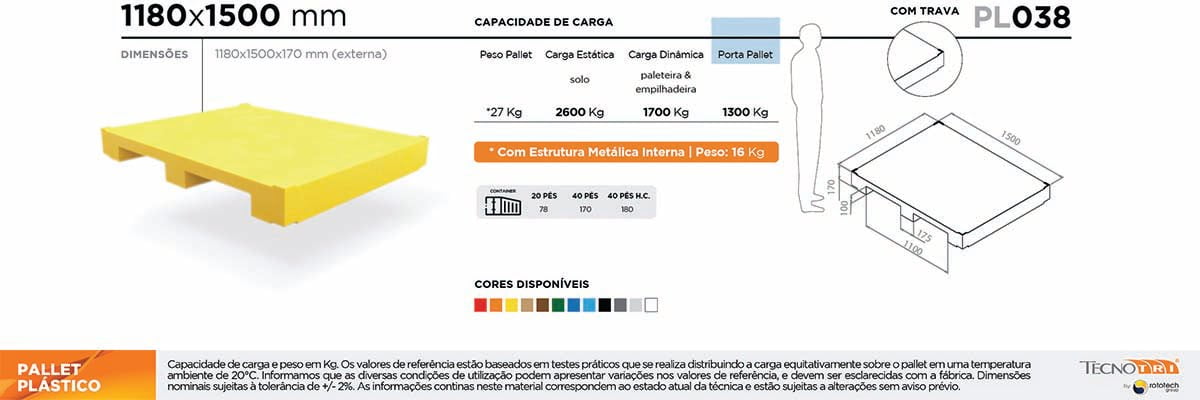 Veja na aba de informações técnicas as capacidades de carga e escolha o pallet PBR ideal para o seu negócio.