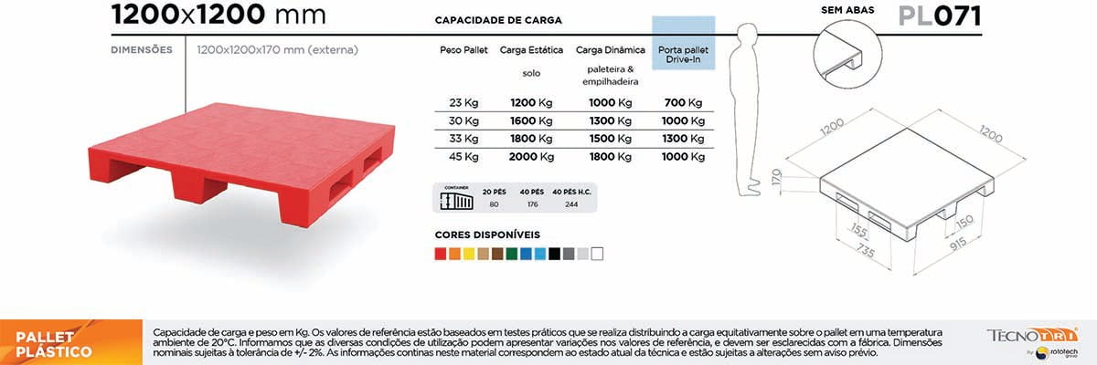 Veja na aba de informações técnicas as capacidades de carga e escolha o pallet PBR ideal para o seu negócio.