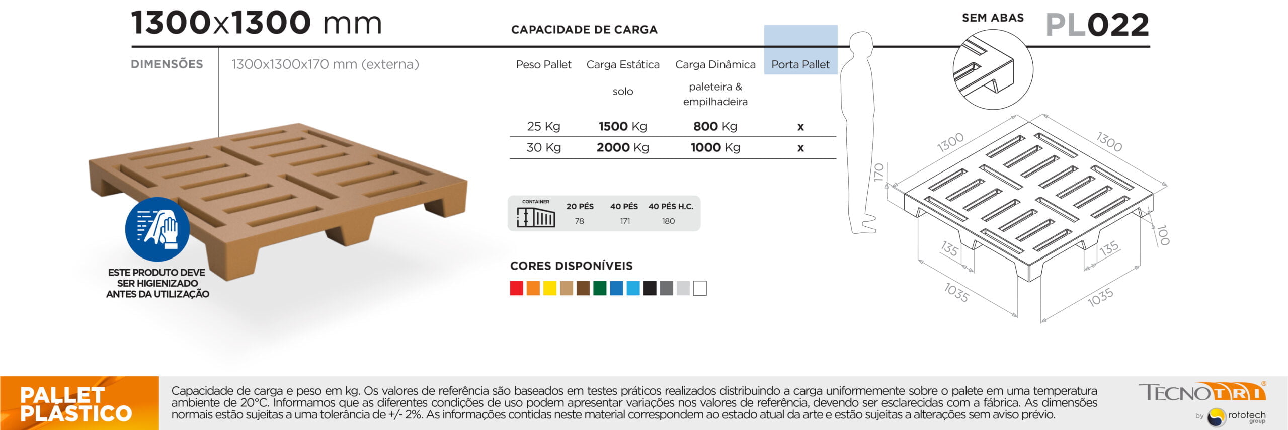 Veja na aba de informações técnicas as capacidades de carga e escolha o pallet PBR ideal para o seu negócio.