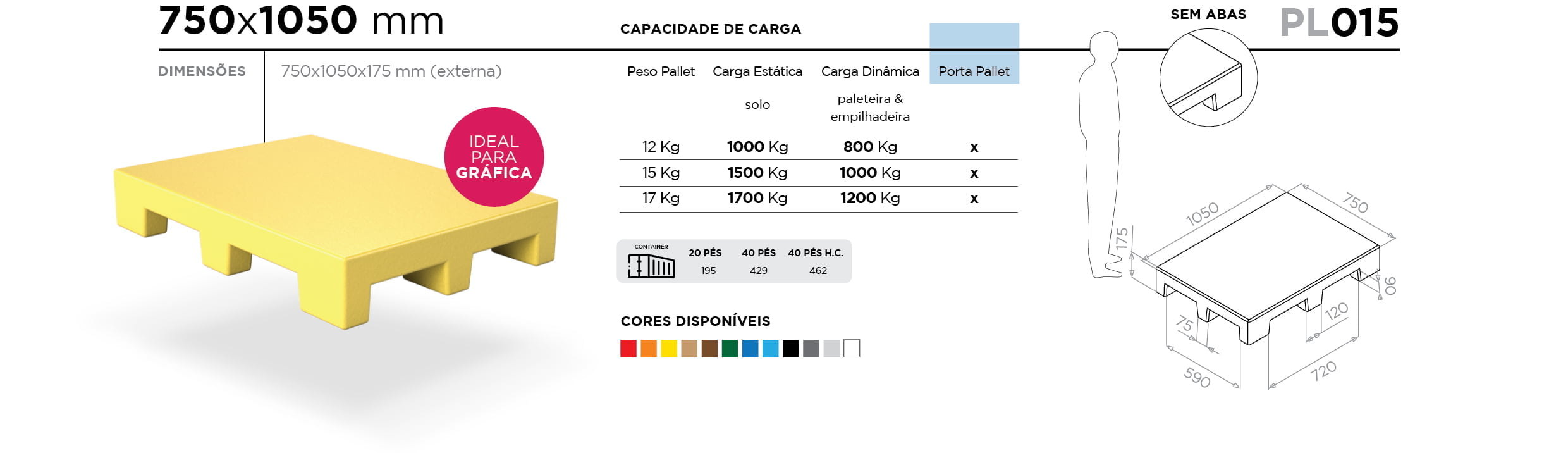 Veja na aba de informações técnicas as capacidades de carga e escolha o pallet PBR ideal para o seu negócio.