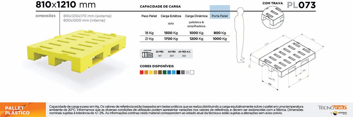 Veja na aba de informações técnicas as capacidades de carga e escolha o pallet PBR ideal para o seu negócio.
