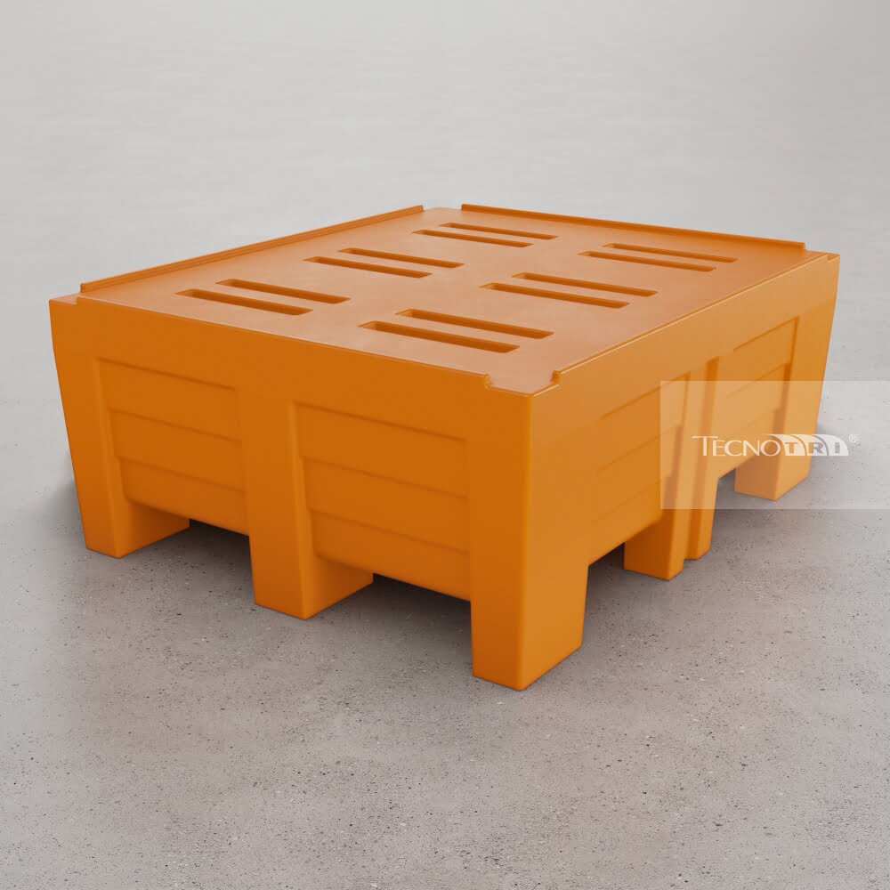 Já o pallet de contenção previne o vazamento de princípios ativos, excipientes, agentes químicos inflamáveis, ácidos e corrosivos de recipientes, diminuindo a periculosidade na movimentação e protegendo o solo e o ambiente. Além disso, ele permite que o líquido eventualmente derramado possa ser reutilizado.