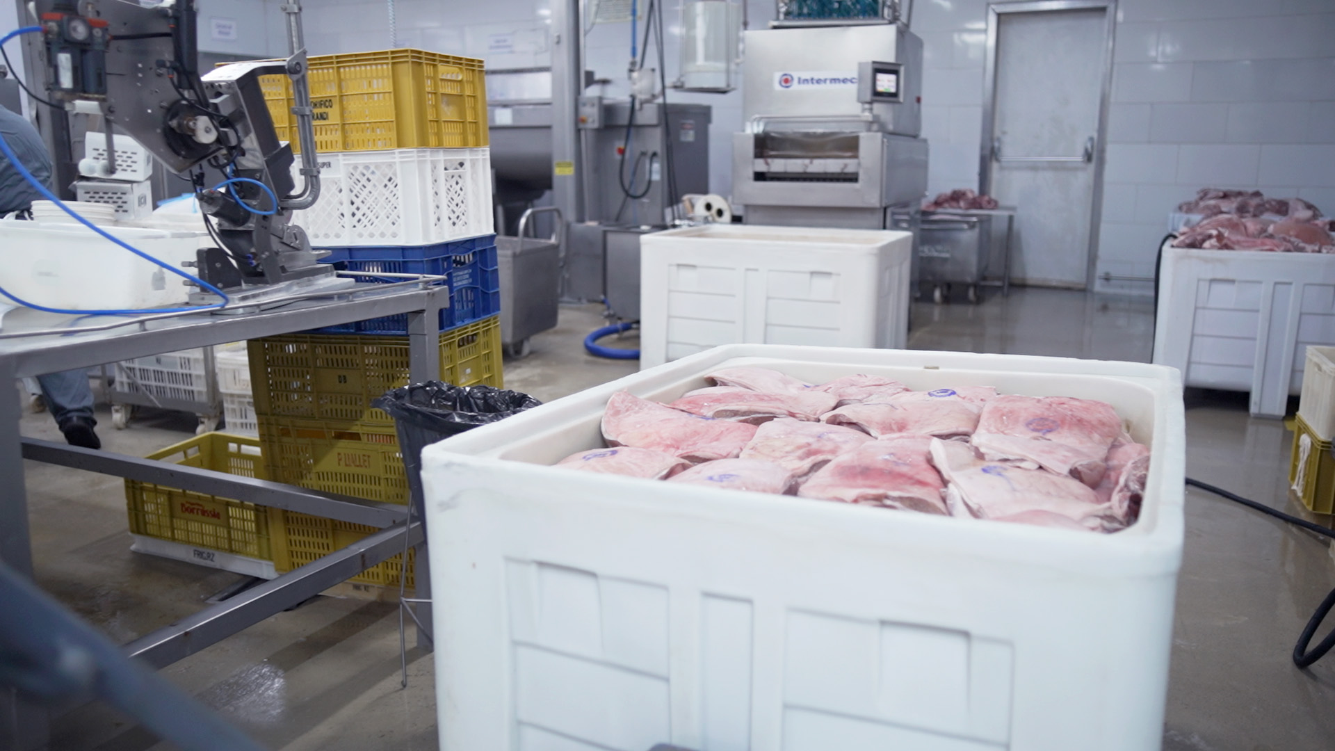 Movimentação e conservação de carnes em ambientes frios, com resistência a baixas temperaturas.
