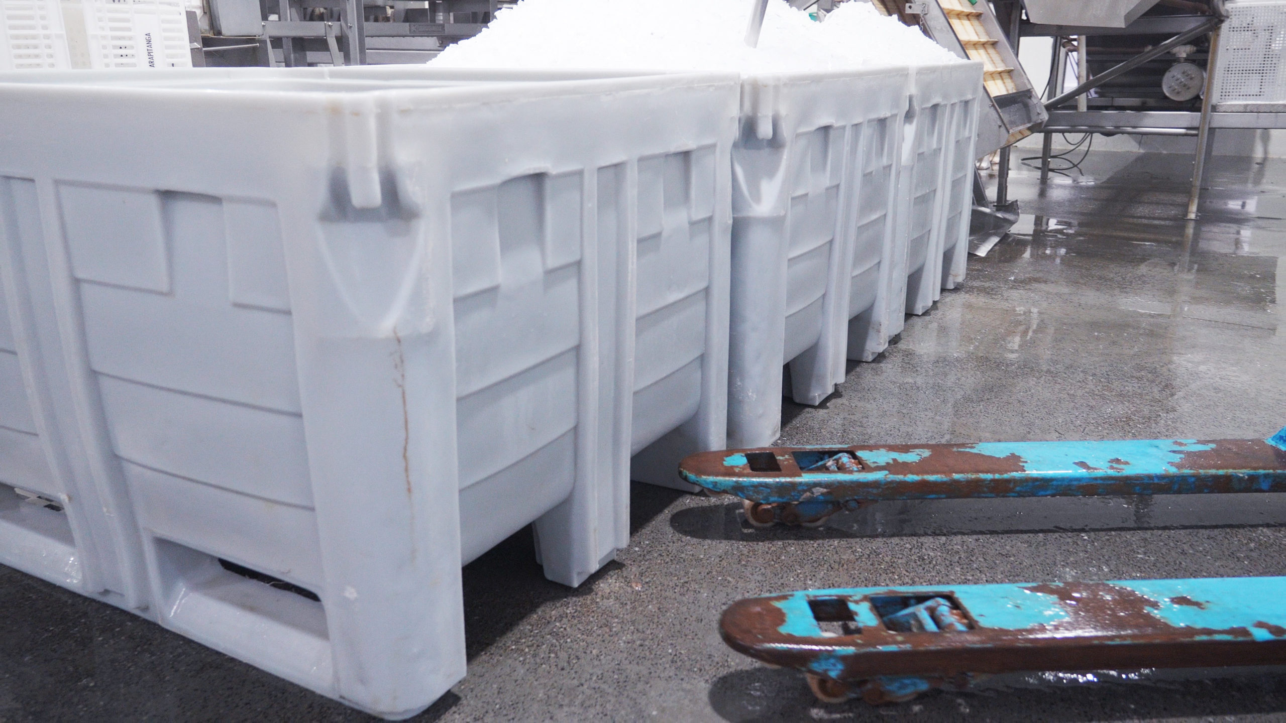 Conservação e transporte de peixes e frutos do mar, com fácil higienização e resistência à umidade.